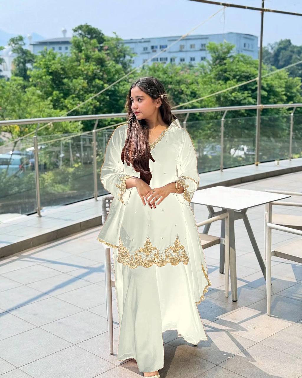 Fabric: Heavy Faux Georgette with Moti Work & Lace Border