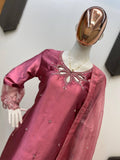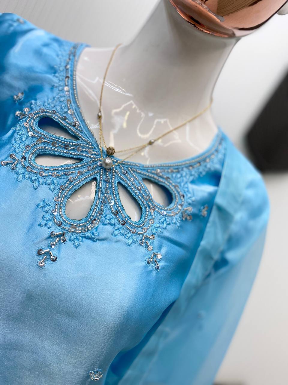 *DESIGNER WEAR EXCLUSIVE 3 PIECE SUIT IN BEADS WORK ON KURTI,PLAIN PANT WITH ORGANZA DUPATTA*