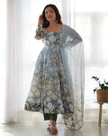 New Designer Floral Organza Silk Anarkali Set with Gota Patti Dupatta