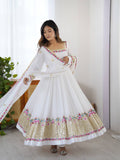 New Designer White Color Premium Heavy Georgette Anarkali Gown With Bottom And Dupatta Set