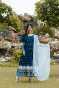 New Partywear Blue Color Faux Georgette Anarkali Suit Set