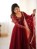 New Partywear Luxurious Crunchy Silk with Lace Border Fully Flared Anarkali Gown
