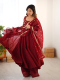 Fabric: Luxurious Crunchy Silk with Lace Border & Fully Flared Design