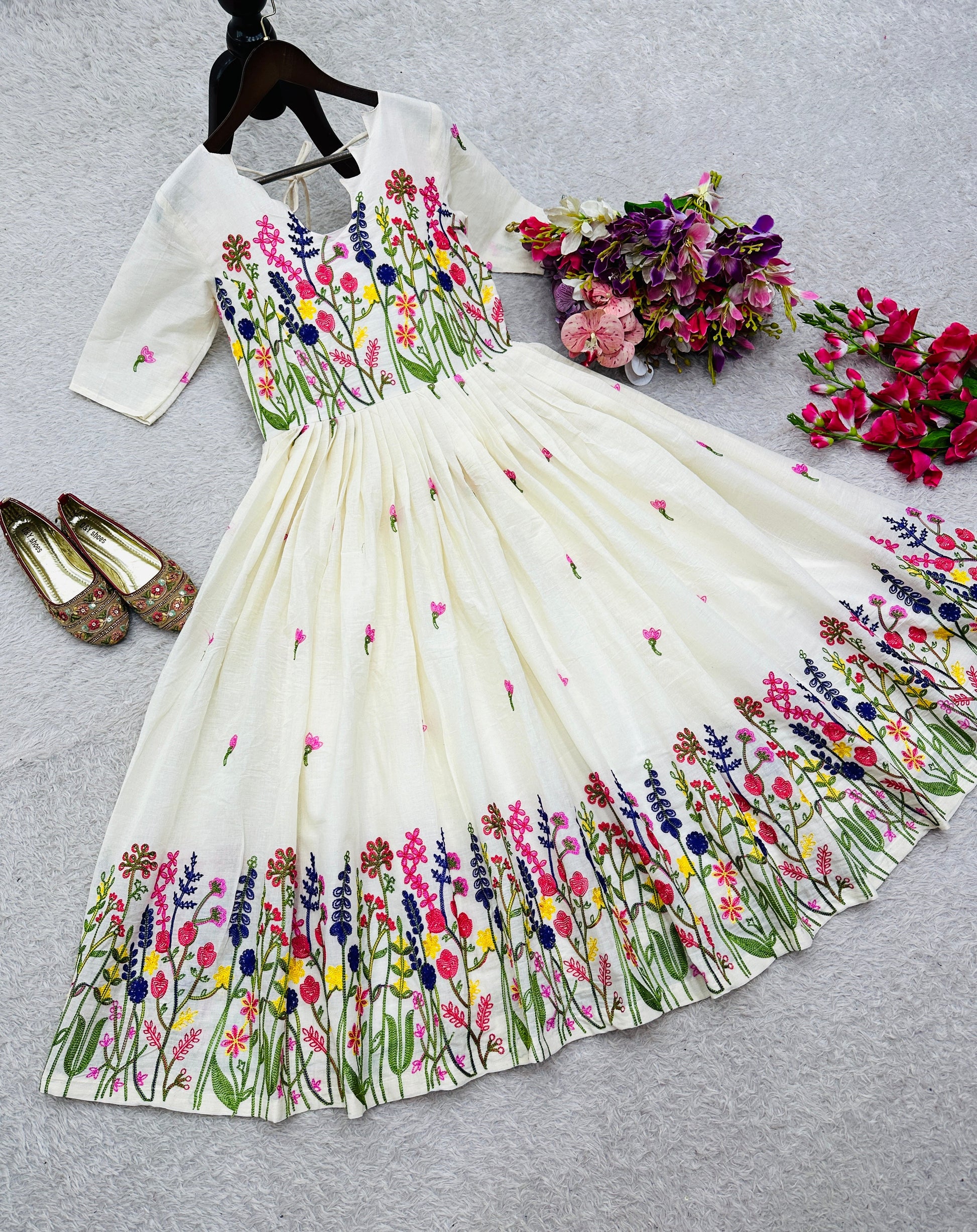 Fabric: Pure Cemri Cotton with Shine Embroidery & Short Sleeves