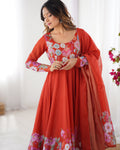 Orange Color Organza Silk Kurta with Handwork Anarkali Suit