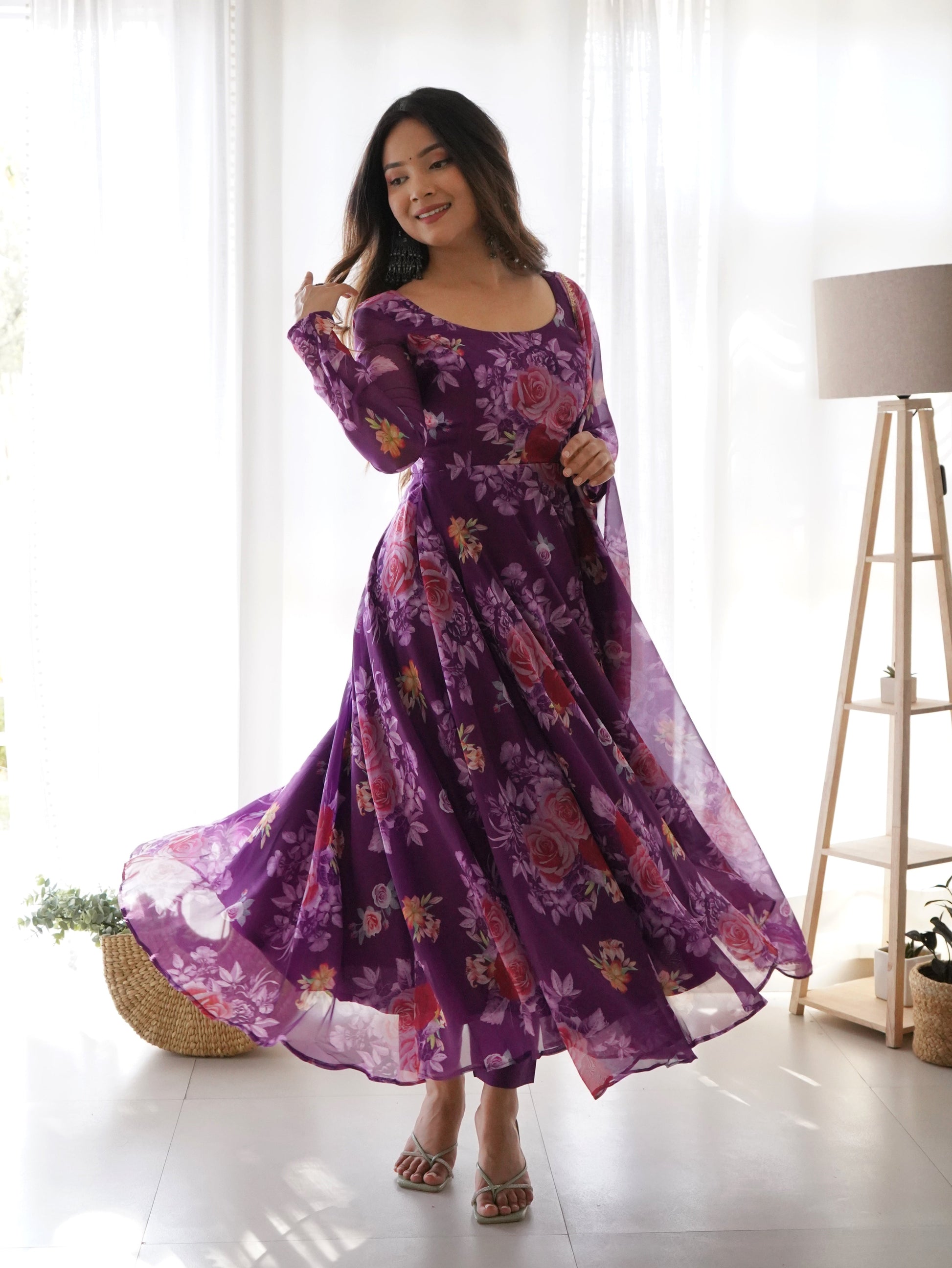 - Anarkali Fabric: Heavy Pure Soft Tabby Organza Silk Floral 3D Print